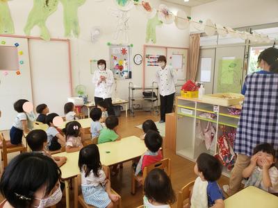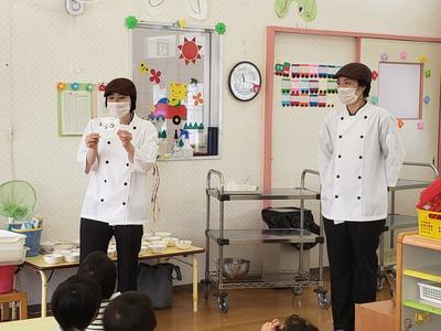 りんご組に給食を作ってくれている先生がやってきて、クイズを出題!!