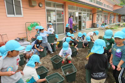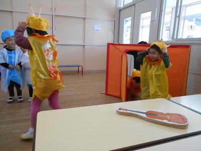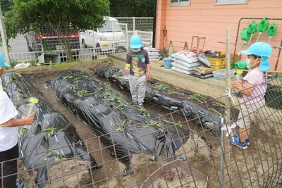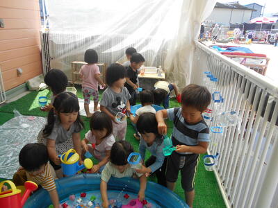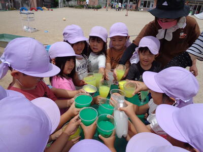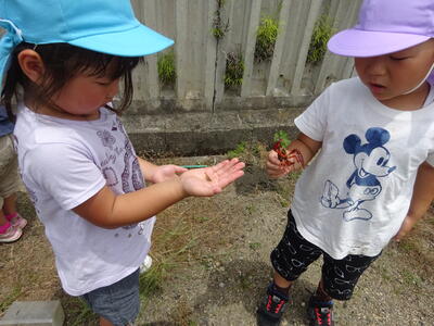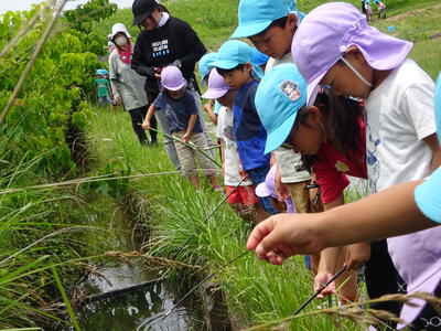 今回は釣り竿では難しかったですが、網で小さいザリガニ、大きいザリガニをたくさん捕まえることができ、大喜びの子どもたちでした。くじら組さん、優しく教えてくれてありがとう!