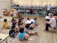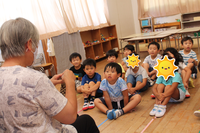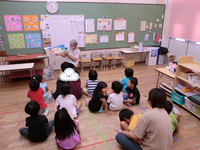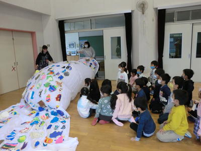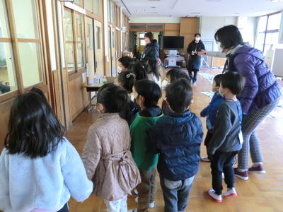 5歳児さんがバスに乗って近くの小学校へ行きました。