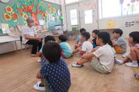 1年生から6年生の勉強している教室を見せてもらったり、図書室、音楽室などにも入らせてもらいました。