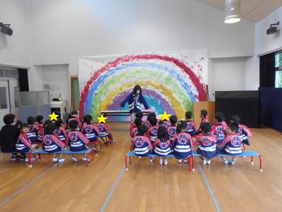 さくらんぼ組さん、ばなな組さん、りんご組さんはお部屋でお話を聞きました。