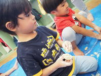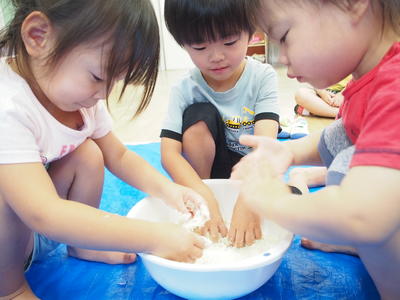 友達と丸めたり伸ばしたりいろいろな感触を楽しんでいましたよ。また、遊ぼうね!
